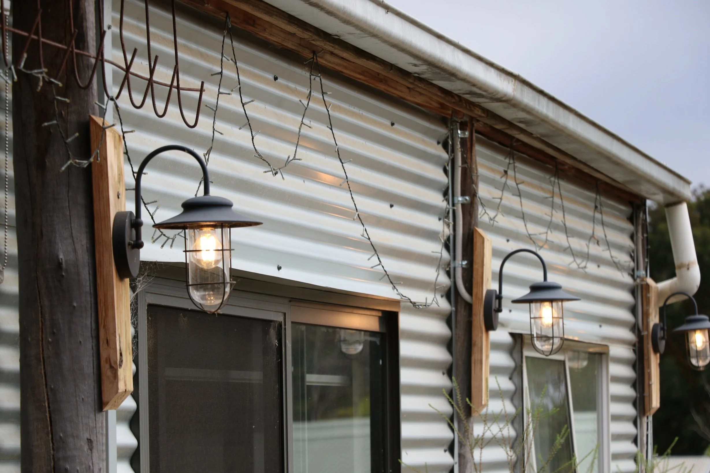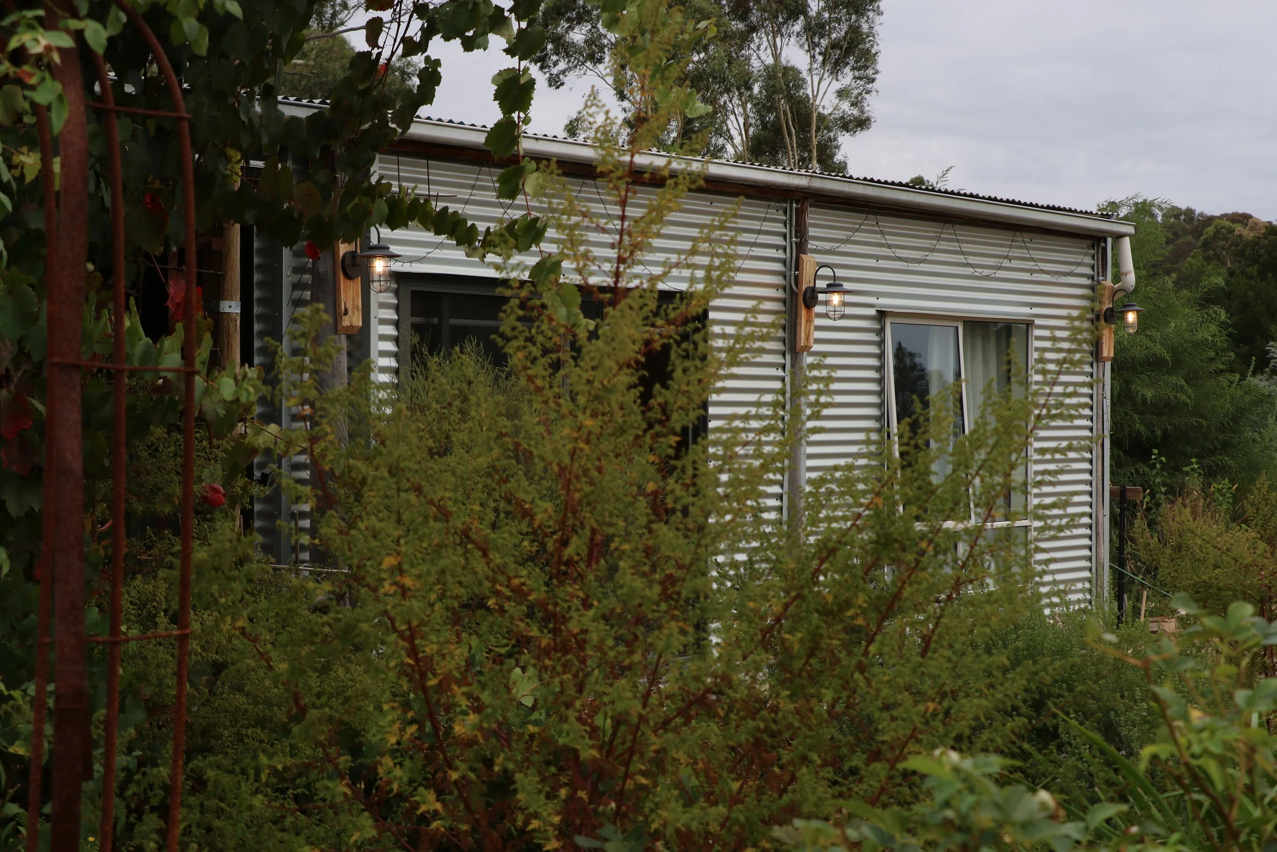 An old horse barn was repurposed into a two bedroom, 1 bathroom home. Designed and built in under 3 months by Earth Home Design. The before picture in the carousel below provides an appreciation of what existed on site prior to the refurbishment and native garden design. The project used 80% recycled materials by way of timber and corrugated iron sheets. Large double glazed windows, recycled from commercial buildings, were used on the northern face to invite solar gains.